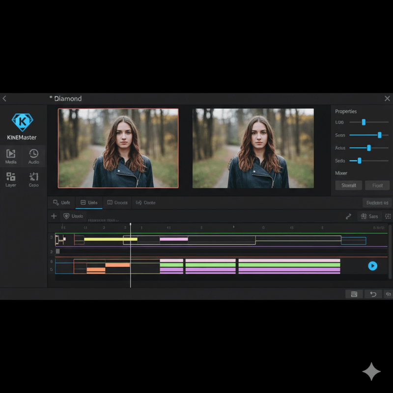 Download Kinemaster Diamond Mod Apk untuk Android [Ad Free + No Watermark] – Kinemaster Diamond v7.8.11.35478.GP adalah versi premium dari aplikasi editing video populer dengan fitur lengkap tanpa watermark. Versi ini menawarkan performa lebih cepat, efek visual menawan, dan kontrol penuh atas pengeditan video profesional di perangkat Android maupun iOS dengan antarmuka yang mudah digunakan.